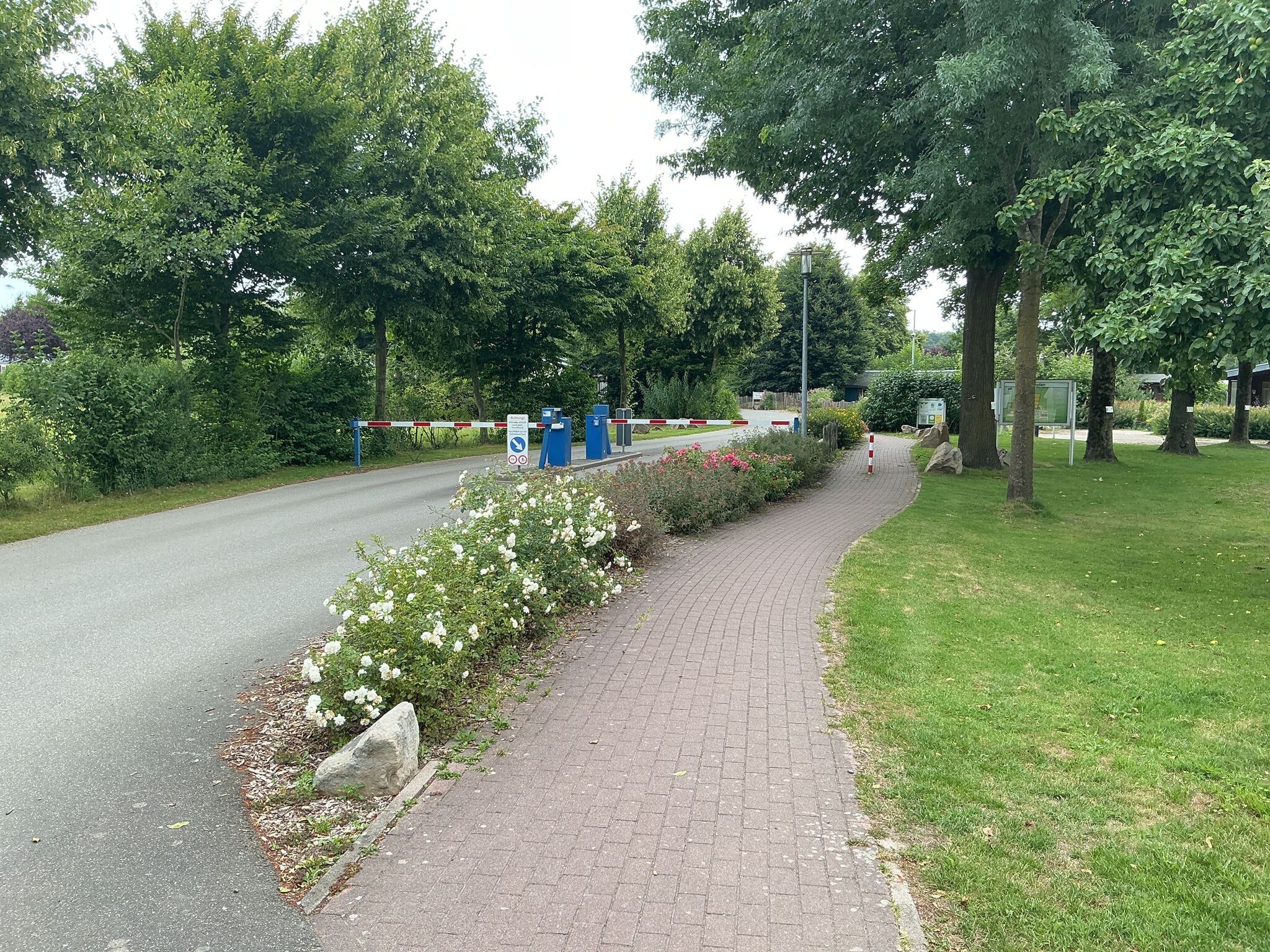 - Die Außenwege auf dem Campingpark sind meist visuell kontrastreich. Es sind aber keine visuell kontrastreichen oder taktil erfassbaren Bodenindikatoren vorhanden.