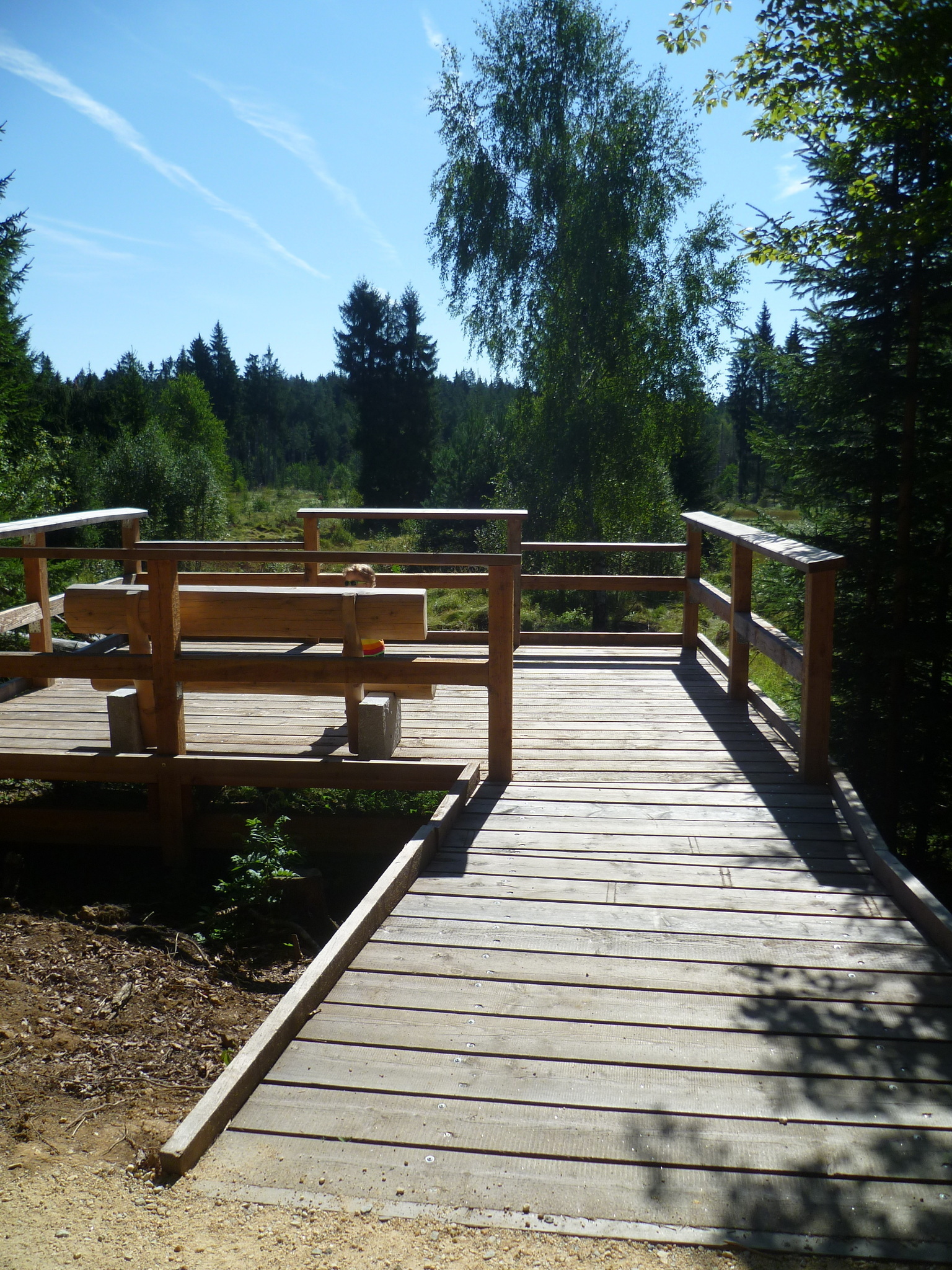 - Der Weg ist von der Oberflächenbeschaffenheit her erschütterungsarm und leicht begeh-und befahrbar (wassergebundene Decke, Forstwege und Holzbohlernwege).