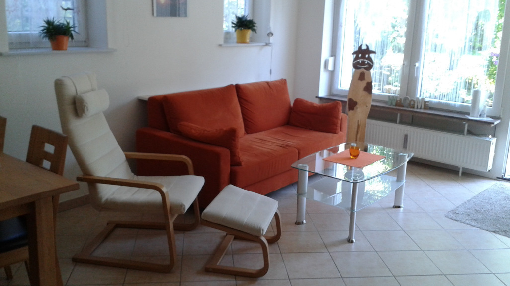 Die 73 m² große Ferienwohnung besteht aus einem Wohnzimmer mit TV / WLAN und Essecke, vollausgestatteter separater Küche, barrierefreies / rollstuhlgerechtes Bad mit ebenerdiger Dusche und zwei Schlafzimmer (1.SZ-Doppelbett, 2.SZ zwei Einzelbetten, eines davon als Pflegebett mit Pflegerahmen).