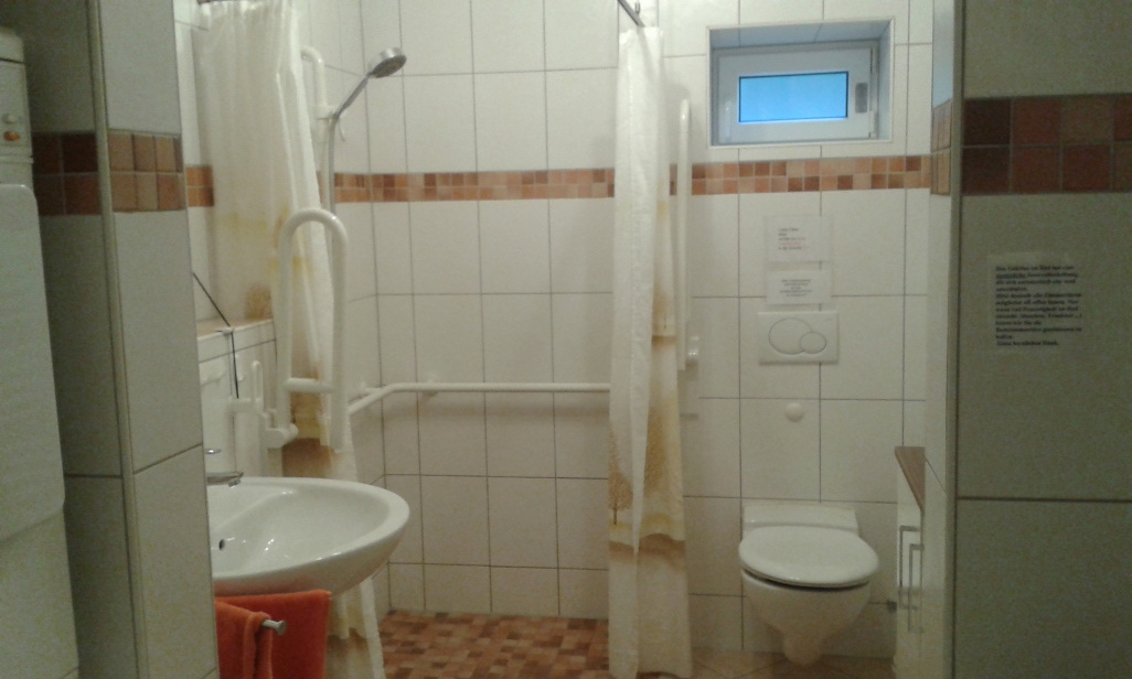 - Es ist ein barrierefrei konzipiertes Zimmer vorhanden. Ein elektrischer Pflegerahmen für das Bett, sowie ein Haken an der Decke kann zur Verfügung gestellt werden.