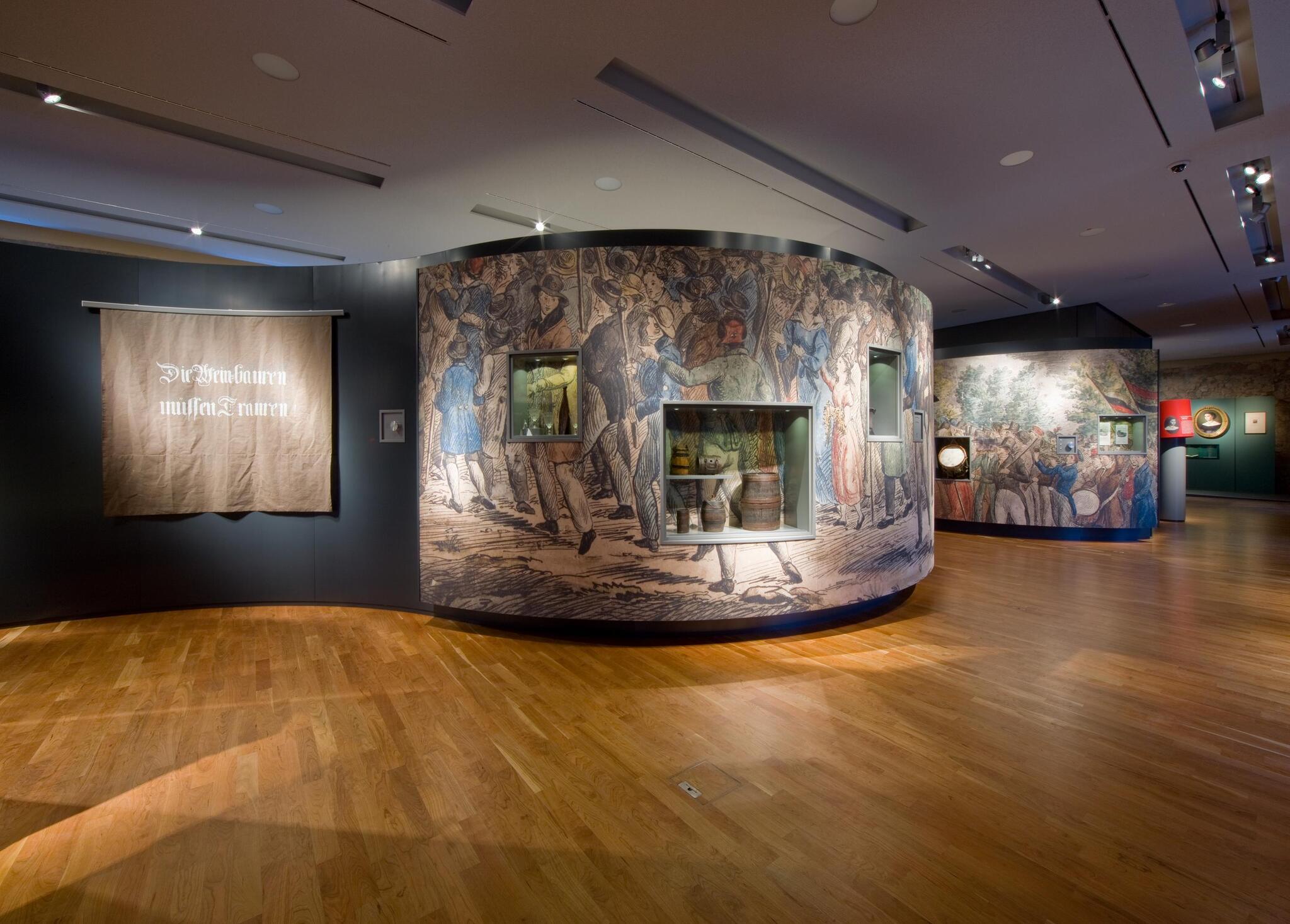 Im Schloss wartet die Ausstellung „Hinauf, hinauf zum Schloss“ darauf, erkundet zu werden. Hier werden die demokratiegeschichtlichen Ereignisse rund um das Hambacher Schloss anhand spannender Themenkomplexe lebendig und anschaulich dargestellt.