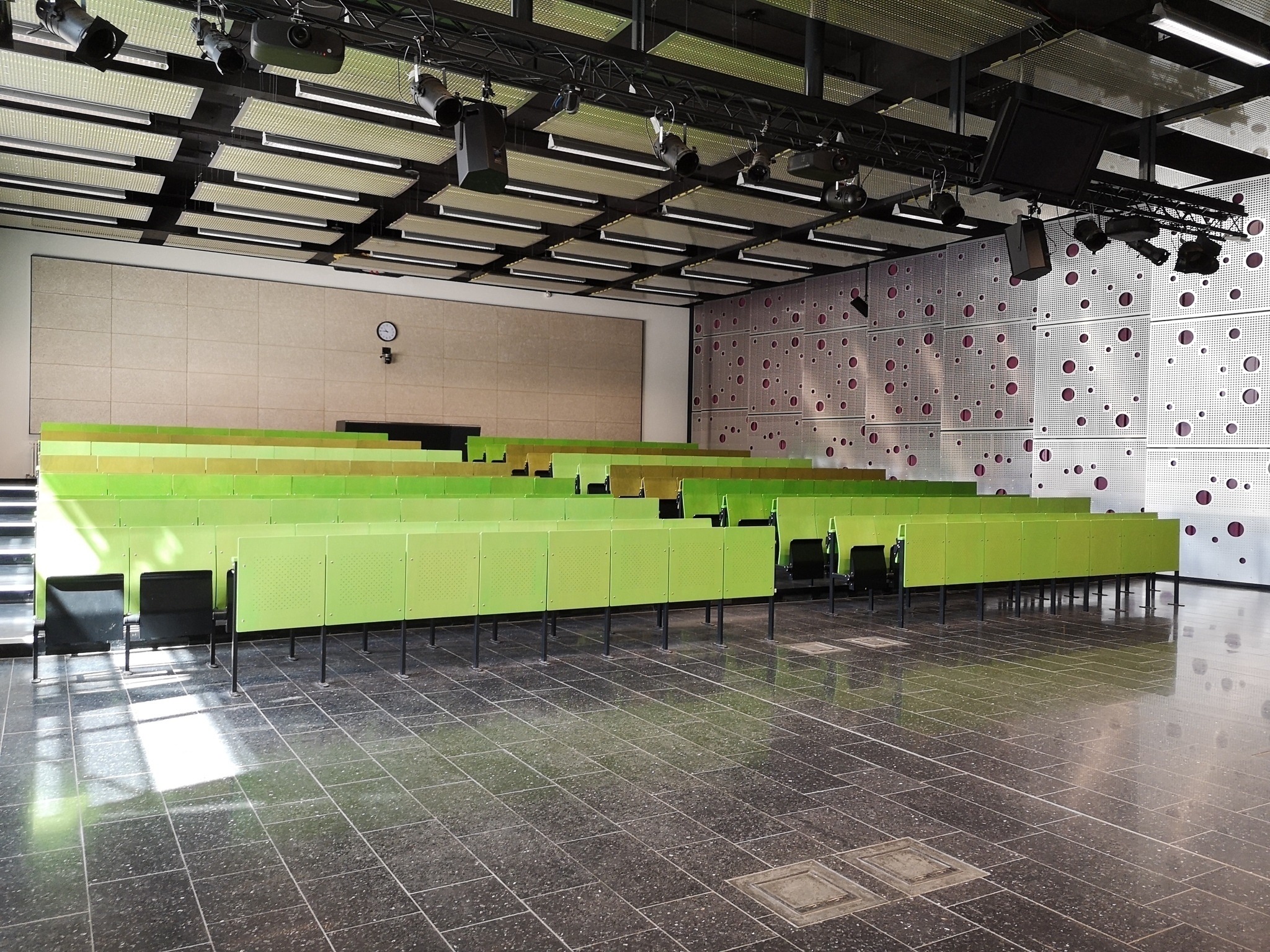 - Der Alarm ist in folgenden Räumen optisch deutlich wahrnehmbar: Audimax und Bibliothek/Ausstellung.