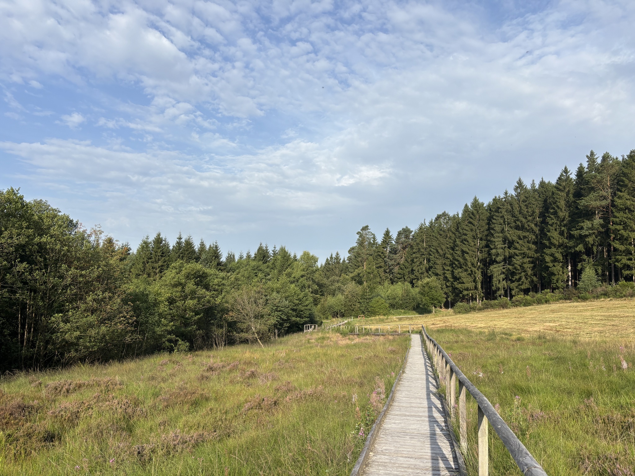 Der Moorpfad Dahlem führt durch ein intaktes Moorgebiet mit seiner besonderen Flora und Fauna. Der erste Teil der EifelSchleife ist barrierefrei konzipiert und leitet Wanderinnen und Wanderer über einen Holzbohlensteg durch das Moor. Informationstafeln entlang der Route vermitteln wissenswertes über dieses einzigartige Biotop. Startpunkt ist der Wanderparkplatz "In der Wasserdell" in Dahlem.
