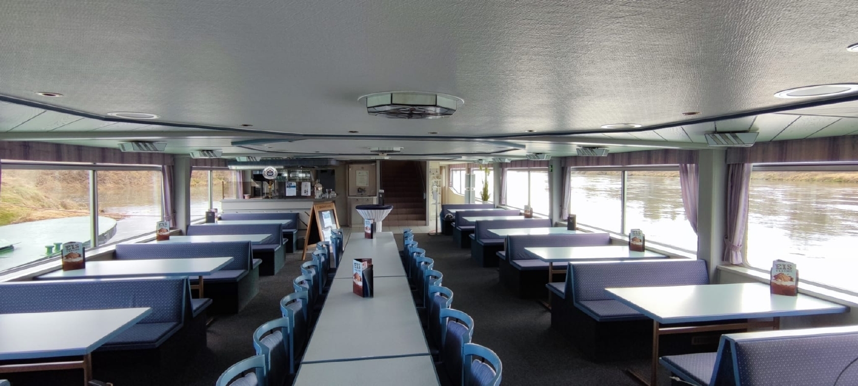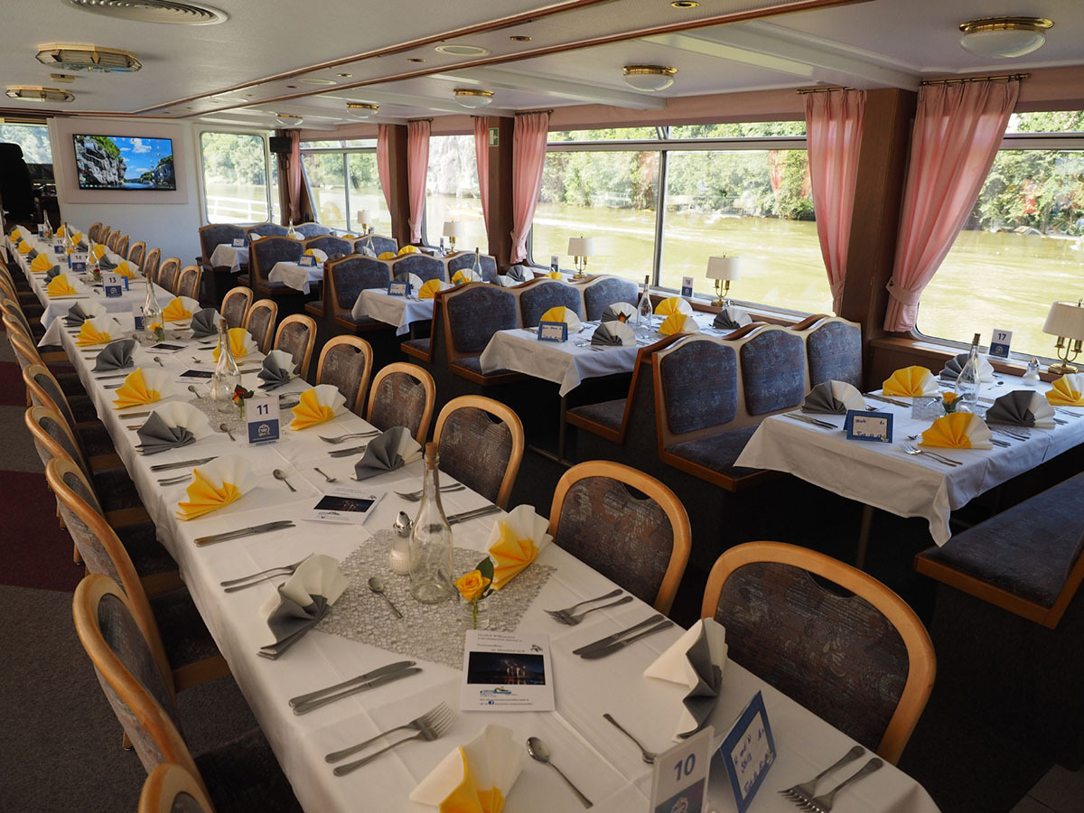 - In den Speiseräumen Unterdeck, Mitteldeck und Oberdeck sind unterfahrbare Tische vorhanden. Im Außenbereich gibt es keine unterfahrbaren Tische.