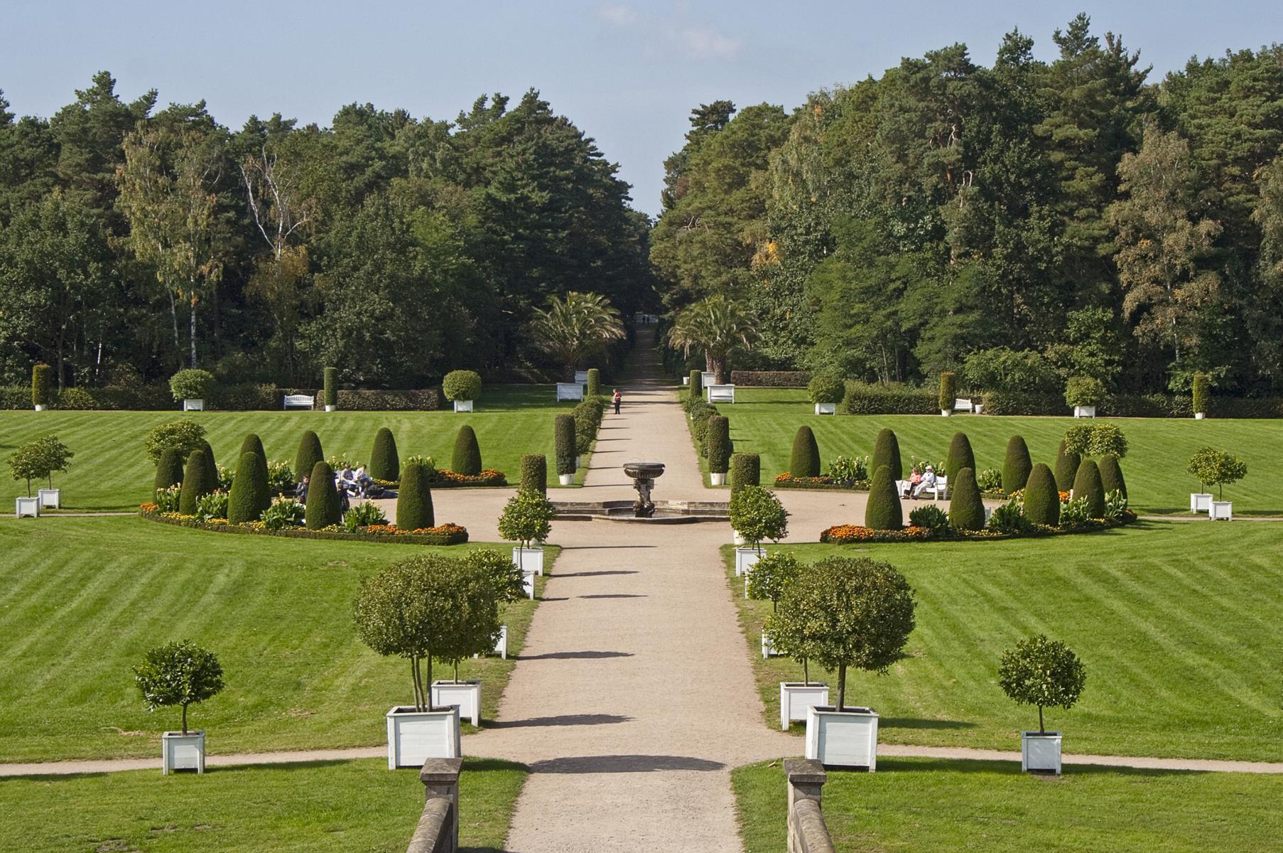 - Es liegen keine Neigungen von mehr als 6 % vor. Ausnahme: der Weg zur Pagode und Chinesischem Teehaus hat eine Steigung von 10 % auf 15 m Länge.