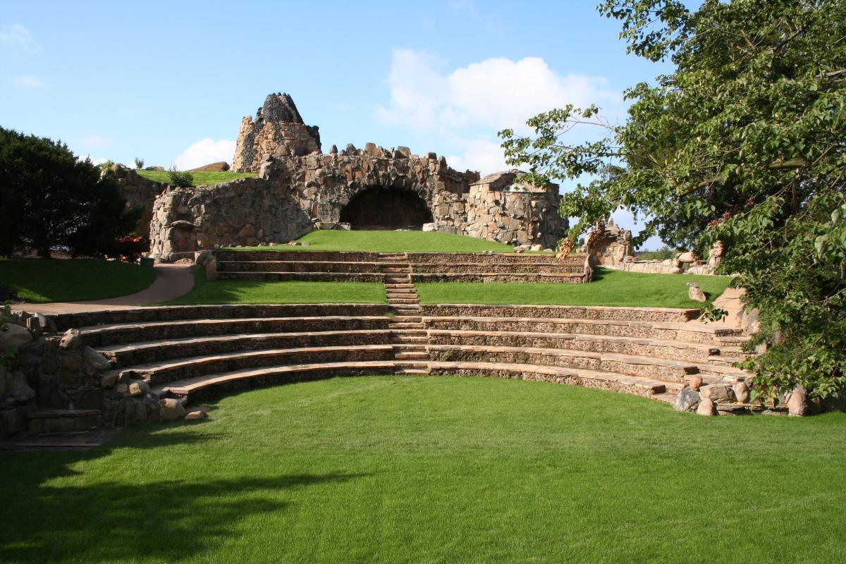 - Im Park befinden sich vereinzelt große Findlinge, an denen Wegeführungen angebracht sind. Diese Beschriftungen sind nicht visuell kontrastreich gestaltet.