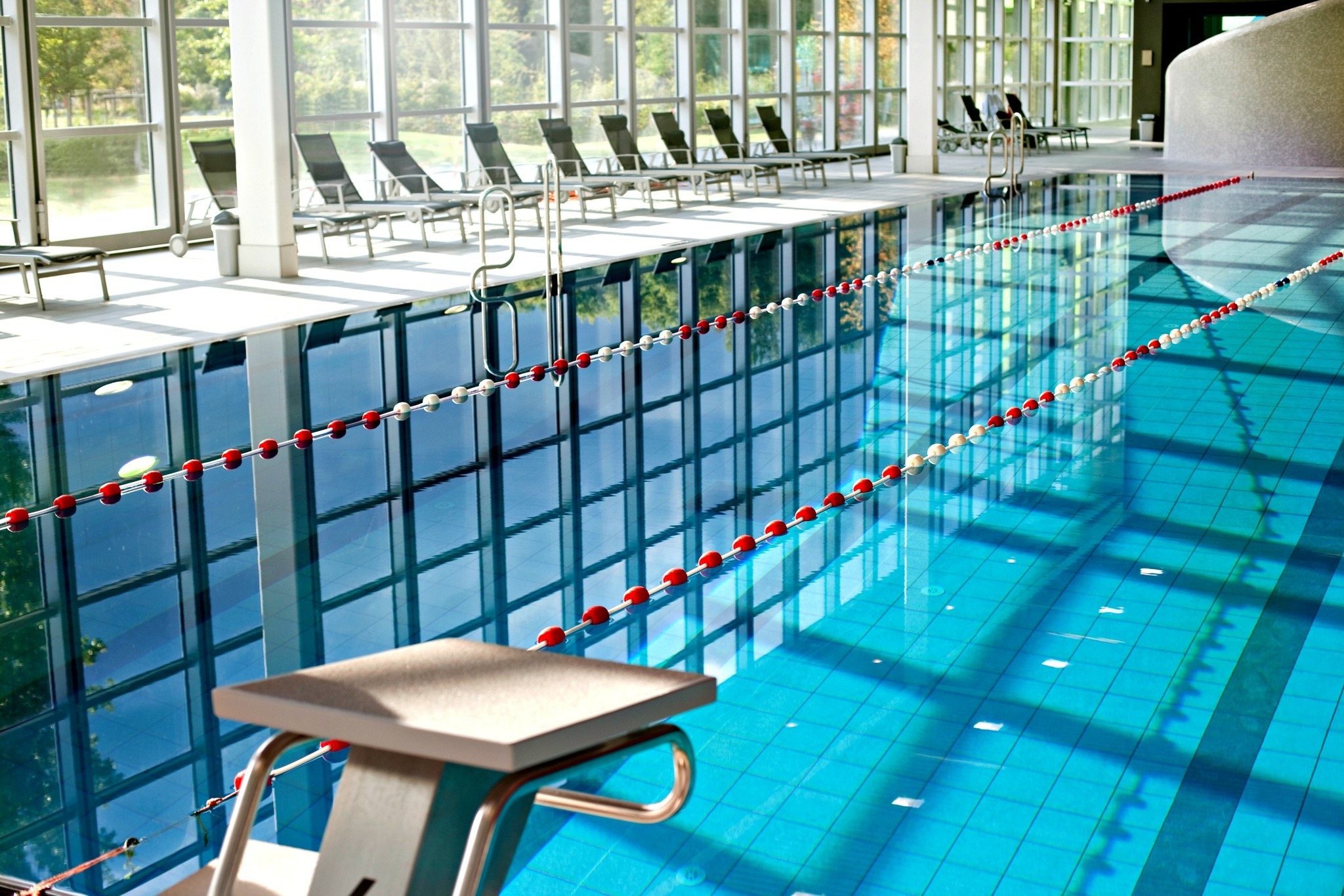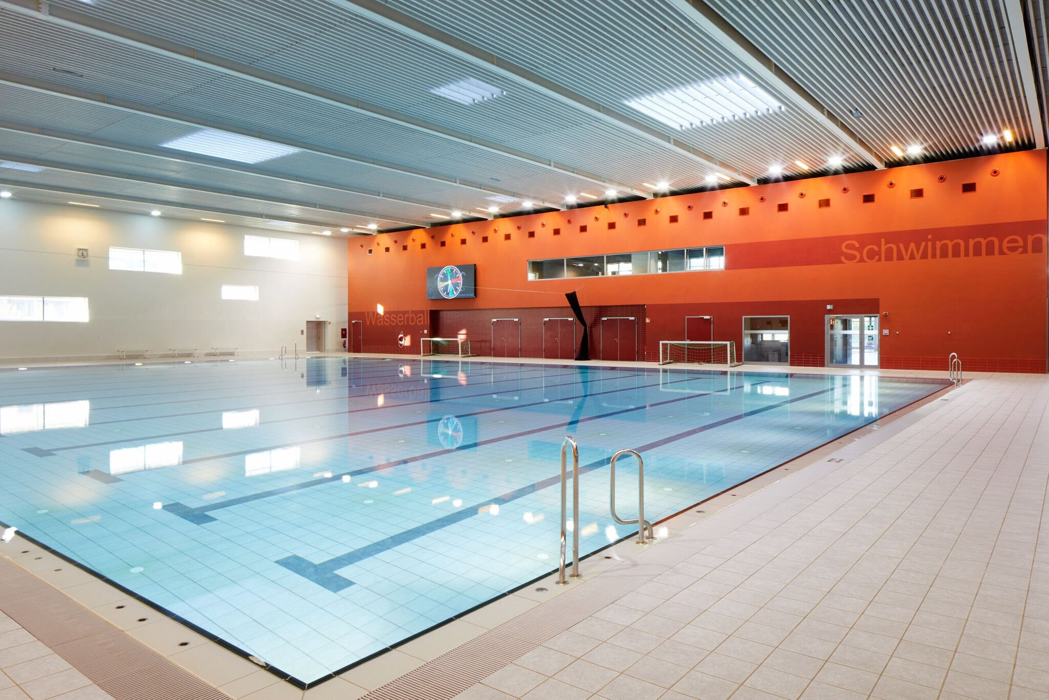 - Der Name der Schwimmhalle ist von außen klar erkennbar.