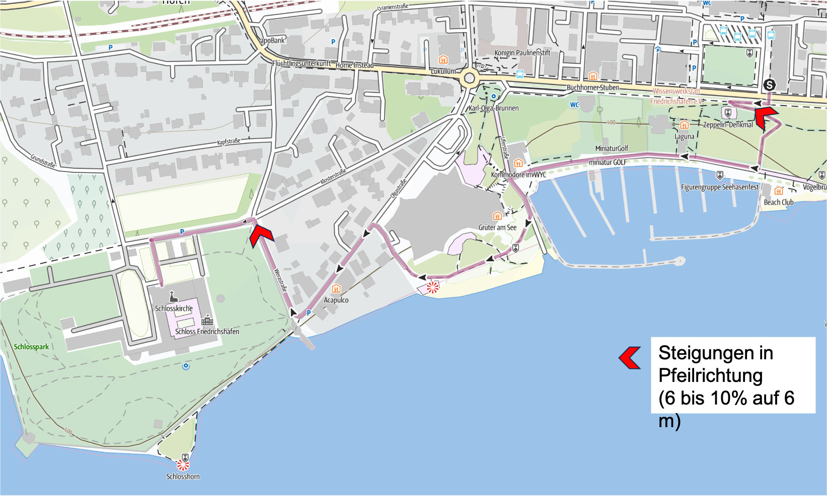 - Abschüssige Stellen auf dem Weg sind gesichert (z.B. mit Handläufen).