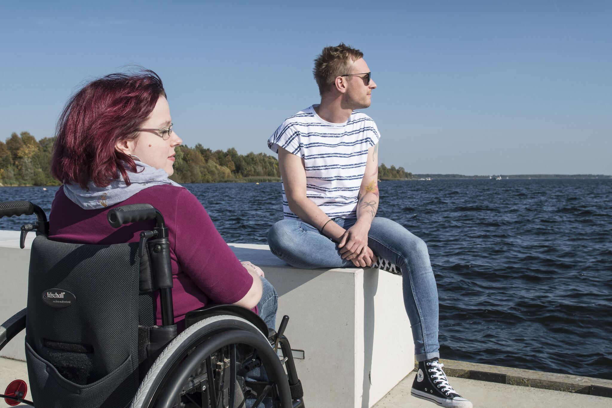 Menschen mit Gehbehinderung und Rollstuhlfahrer