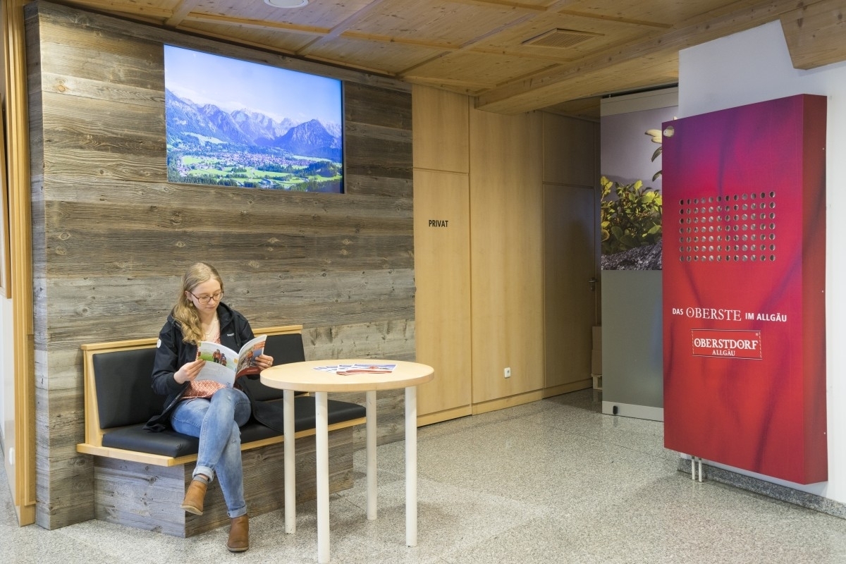 Der Ortsseitige Eingang vom Bahnhofsvorplatz der Tourist- Information verfügt über einen barrierefreien Zugang. Über einen Aufzug ist der Eingang über den Parkplatz zugänglich. Ob Jung oder Alt und mit oder ohne Handicap – jede*r ist herzlich Willkommen. An digitalen Touch-Displays im Innen- und Außenbereich kann sich der Gast auf der Oberstdorf App über Ausflugs- oder Veranstaltungstipps und Aktivitäten informieren. Auch Gäste mit einer Höreinschränkung können über ein mobiles Ringschleifensystem an einem eigens ausgestatteten Arbeitsplatz beraten werden. Das Gerät minimiert die Nebengeräusche, wodurch die Beratungsqualität verbessert wird.