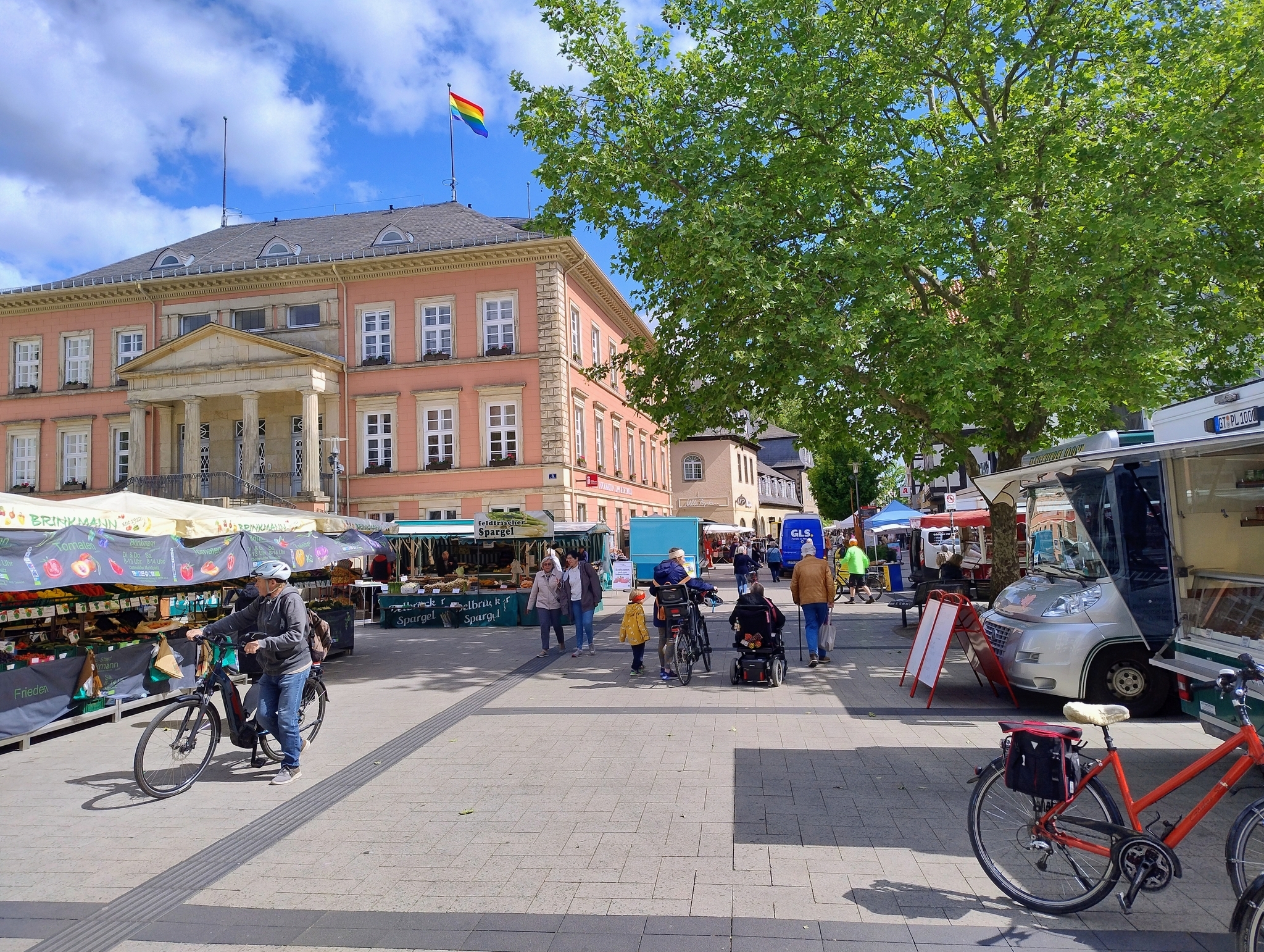 - Es ist ein öffentliches WC für Menschen mit Behinderung vorhanden, welches beidseitig anfahrbar ist (mindestens 85 cm). Es sind links und rechts vom WC klappbare Haltegriffe vorhanden.