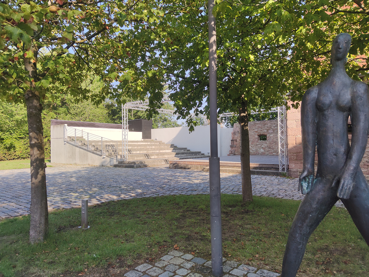 - Zuschauer mit Behinderung werden ebenerdig direkt vor der Bühne platziert (zur Verfügung stehende Fläche: Tiefe 10 m, Breite zwischen 2,50 m und 2 m). Begleitpersonen können in der ersten Stuhlreihe hinter ihnen oder neben ihnen Platz nehmen. Aus organisatorischen Gründen ist eine vorherige Anfrage bzw. Buchung notwendig