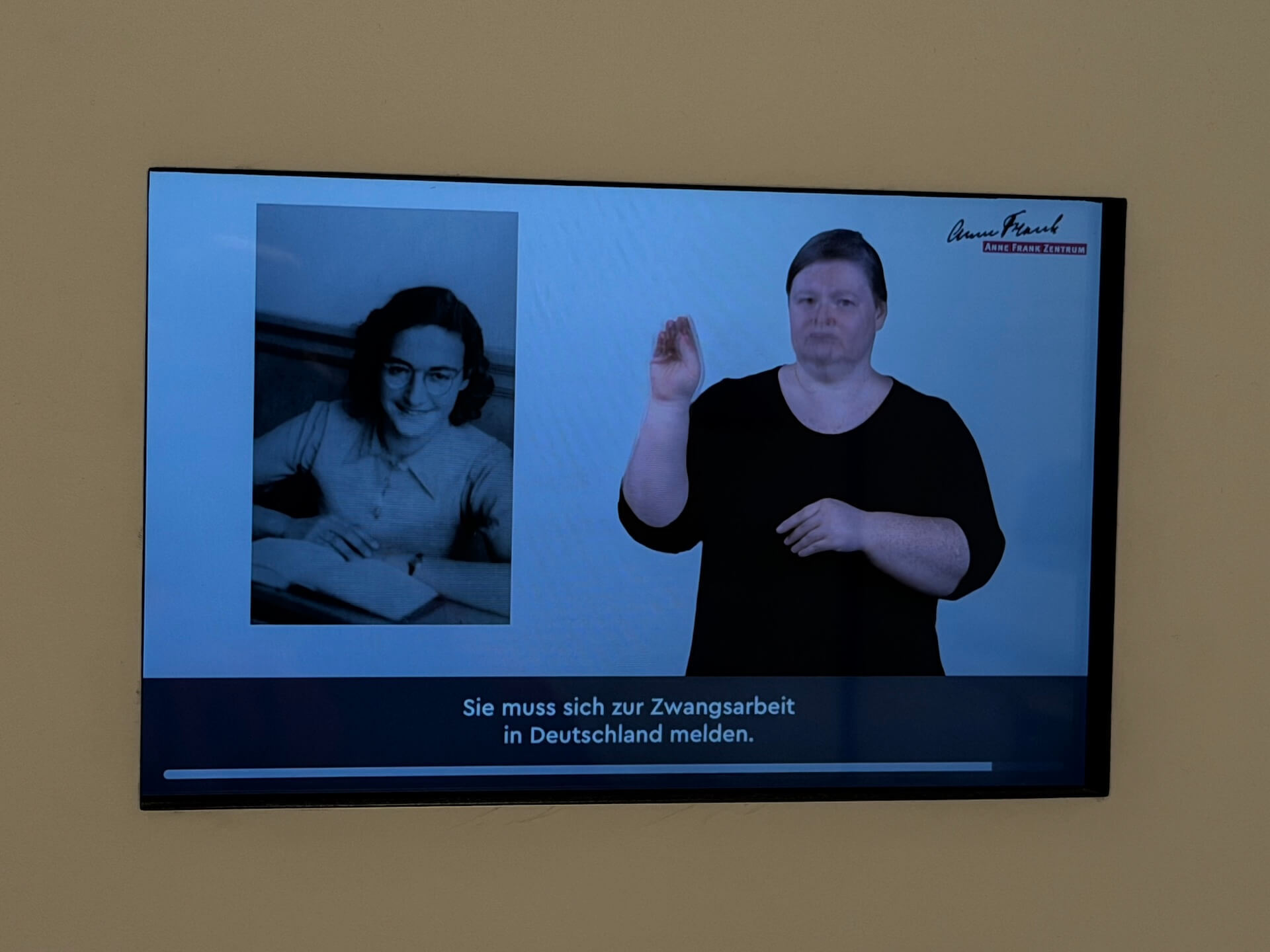 - Es gibt einen Audioguide, Tast-Objekte mit Erläuterungen in Braille und Audiodeskriptionen sowie das Tagebuch der Anne Frank als Punktschrift-Ausgabe.