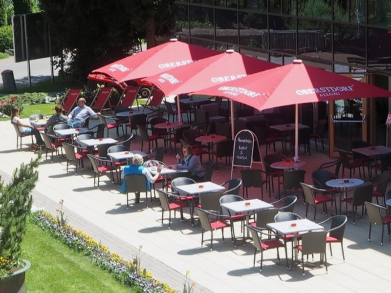 Einen heißen Kaffee oder doch lieber ein kühles Bier? Das Café im Oberstdorf befindet sich inmitten des Kurparks und lädt zu einer kleinen Stärkung ein.