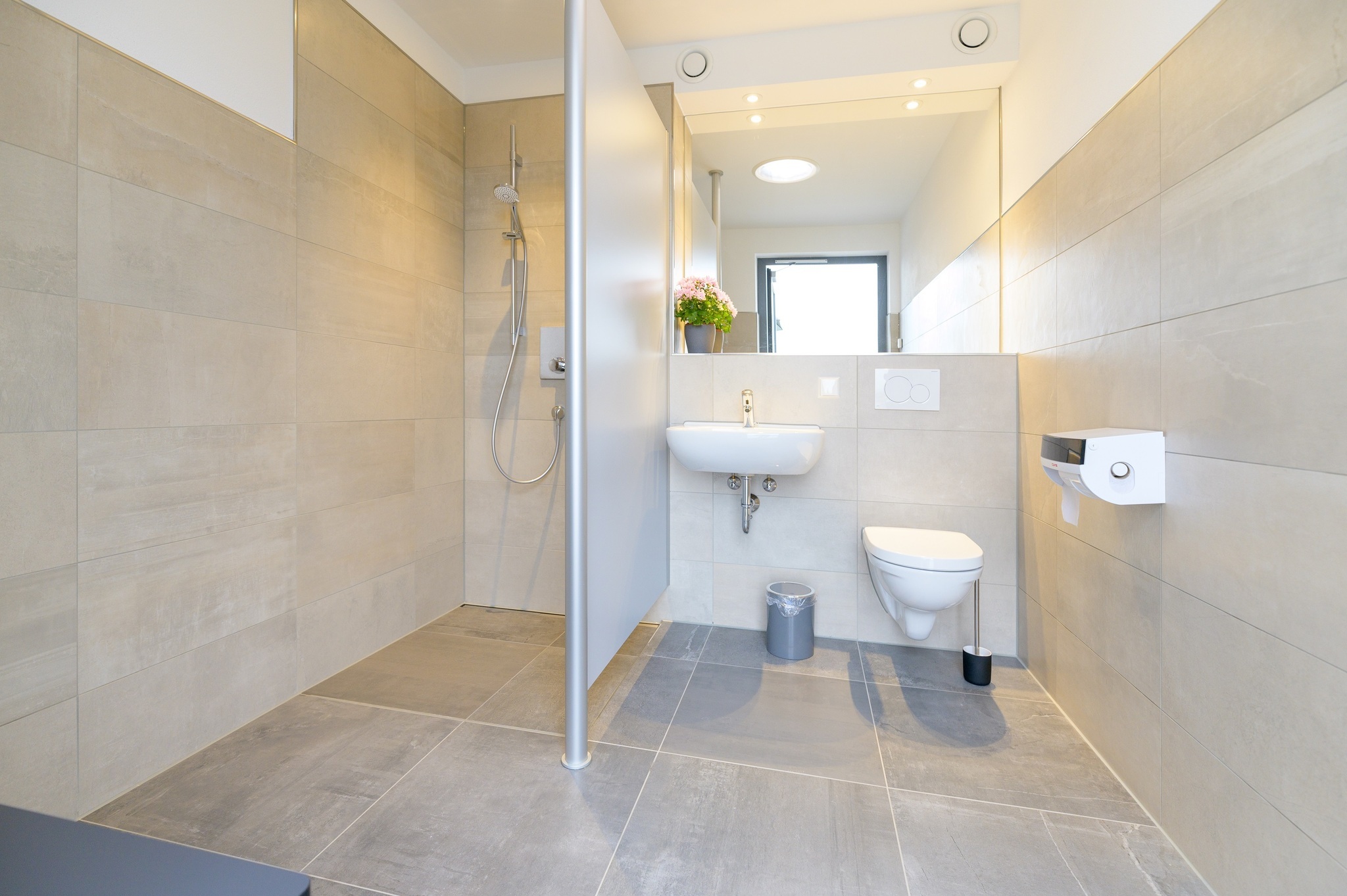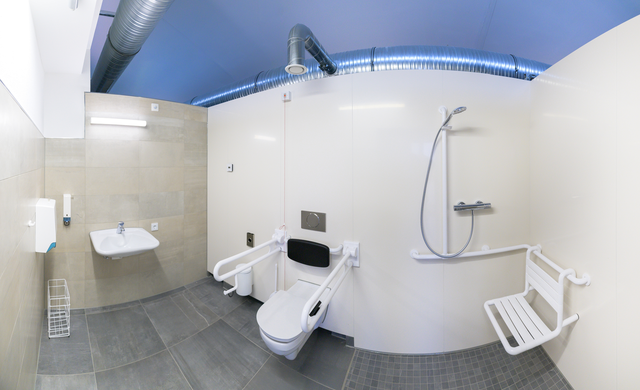 - Es ist ein barrierefrei gestalteter Sanitärraum vorhanden.