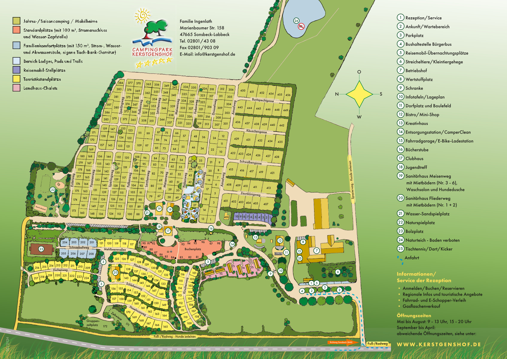 - Name und Logo des Campingparks sind von außen klar erkennbar.