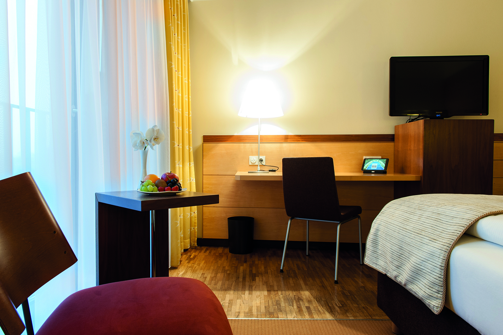 - In den erhobenen Zimmern ist mindestens eine frei verfügbare Steckdose in der Nähe des Bettes vorhanden.