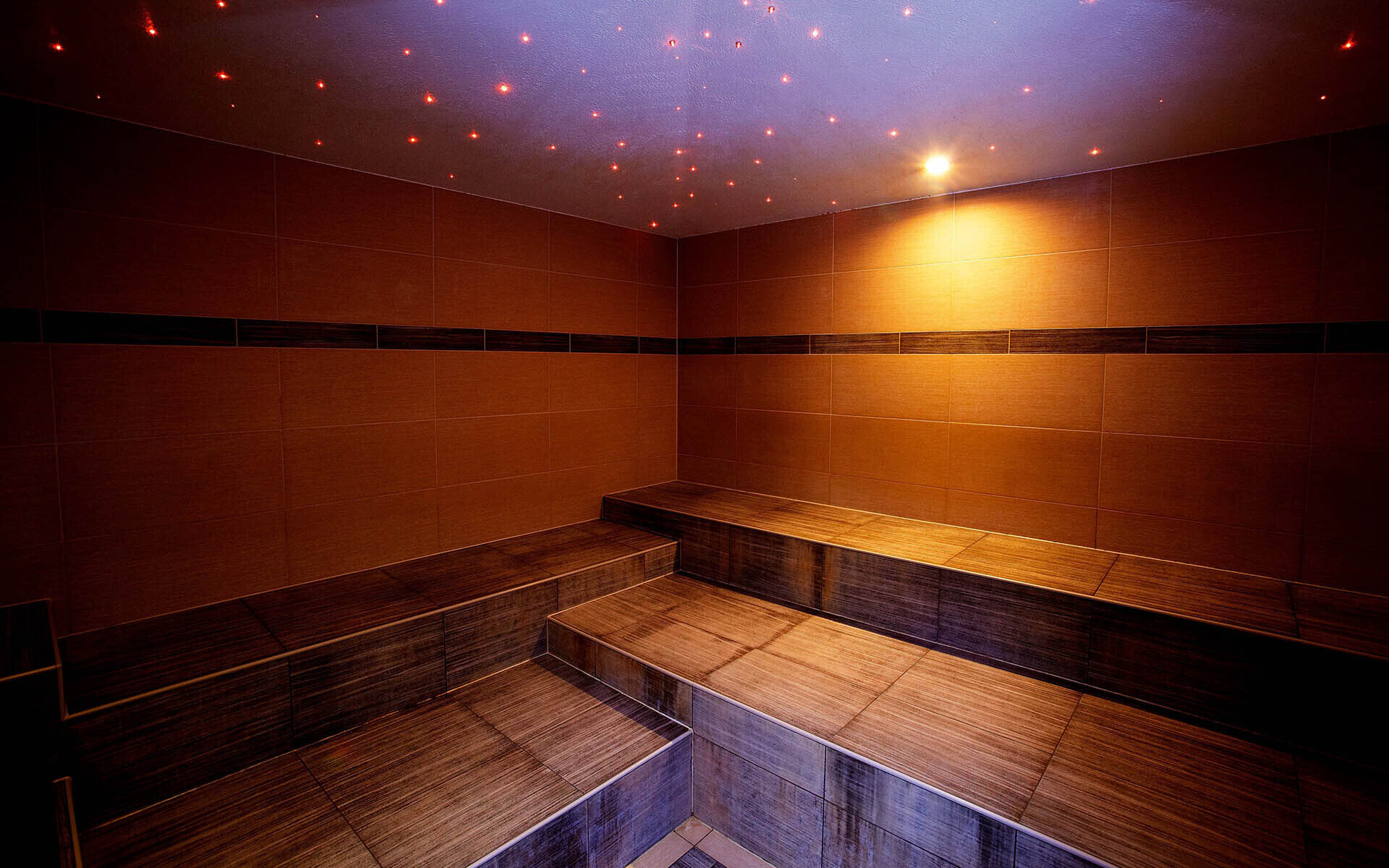 - Treppenstufen im Spa-Bereich sind nicht visuell kontrastreich gestaltet.