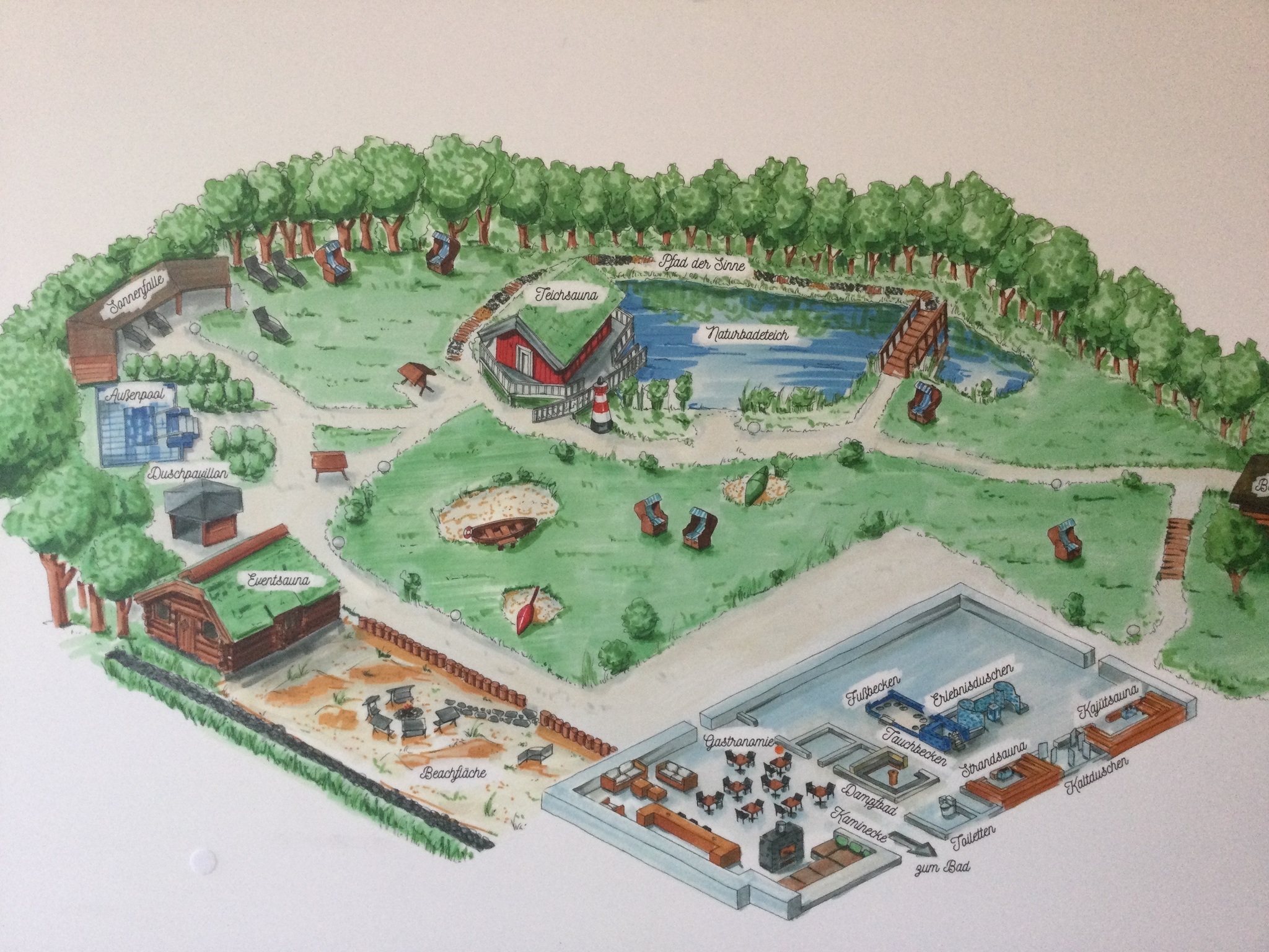 - Alle für den Gast nutzbaren und erhobenen Räume und Einrichtungen sind stufenlos/ebenerdig oder über eine Rampe oder einen Aufzug zugänglich. Ausgenommen sind die Baumsauna und Teichsauna, sowie das Natur-Teichbecken und ein Sole-Außen-Whirlpool. Diese sind nur über Treppen erreichbar.