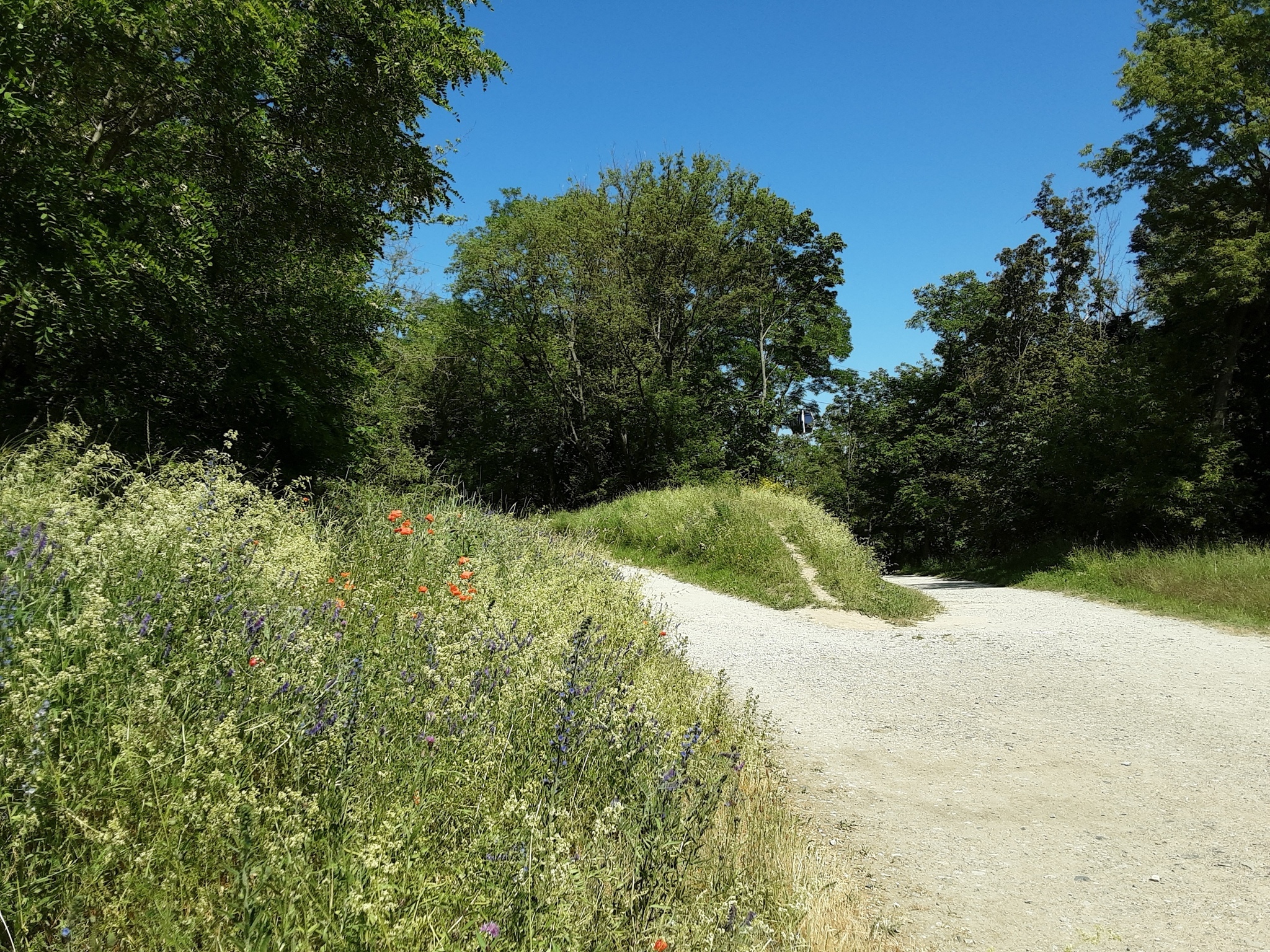 - Die Wege sind mindestens 250 cm breit und leicht begeh- und befahrbar (Hauptwege Asphalt, Querwege meist wassergebundene Oberfläche).