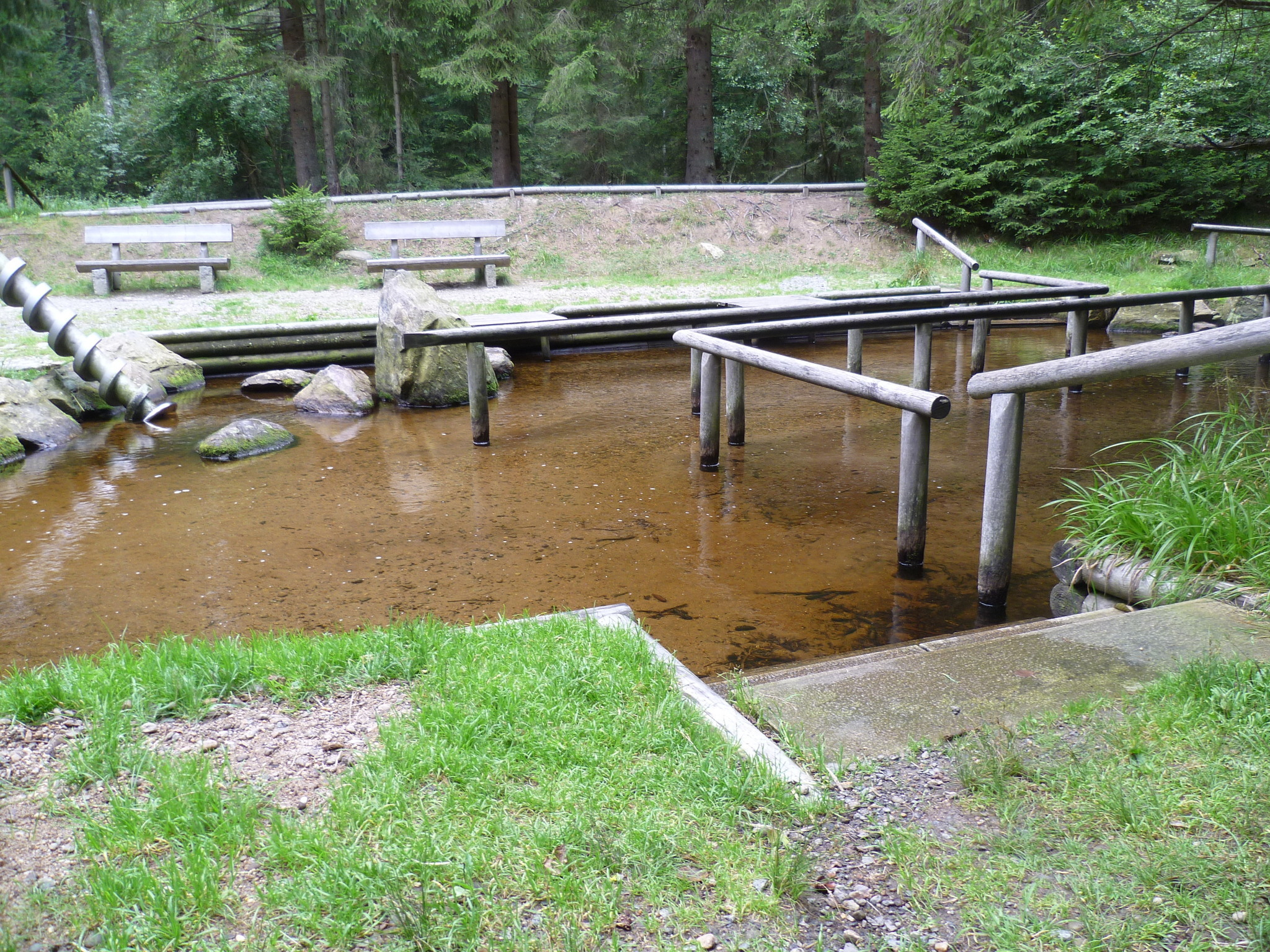 - Zum Einstieg in das Kneippbecken gibt es flache Treppenstufen mit Handlauf.