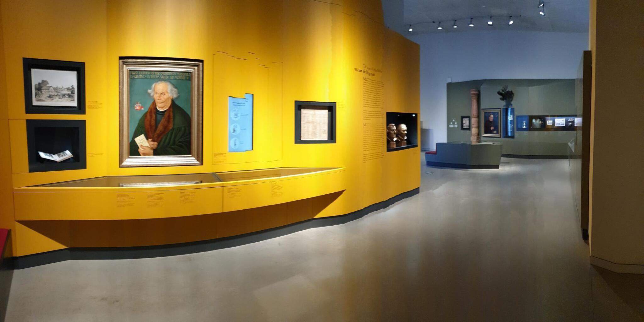 - Informationen zu den Exponaten sind visuell kontrastreich gestaltet.