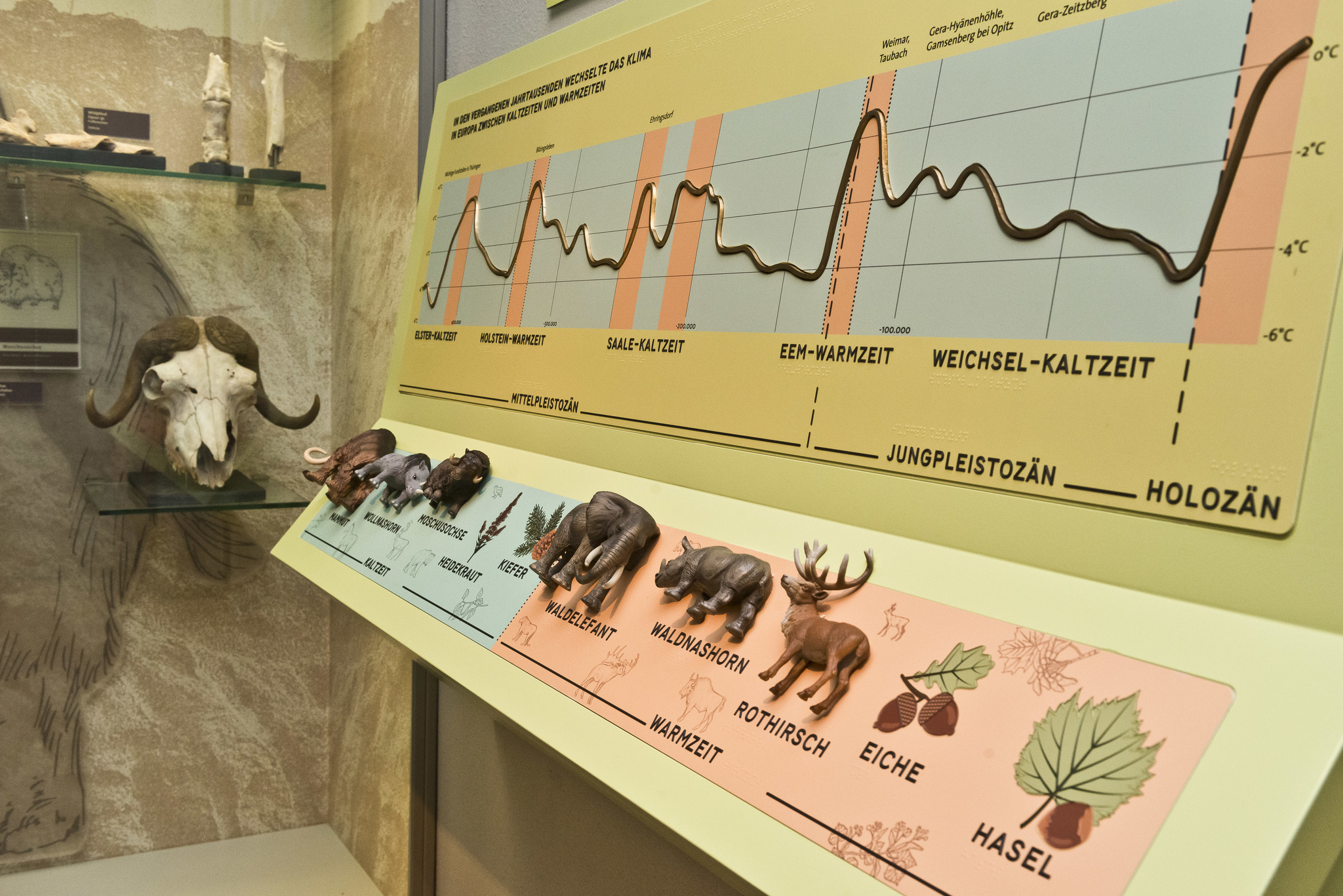 • Die Informationen zu den Exponaten sind in Leichter Sprache oder als fotorealistische Darstellung vorhanden.