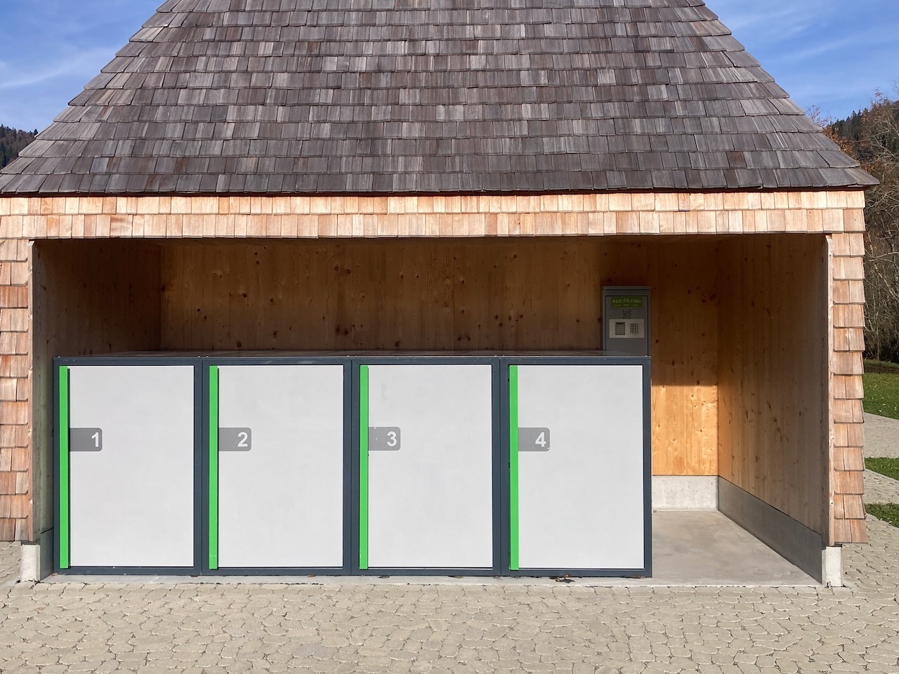 Bushaltestelle, Parkplatz, Abstellplatz für Fahrräder, Fahrradwaschanlage, Pausenbereich und öffentliche Toilette