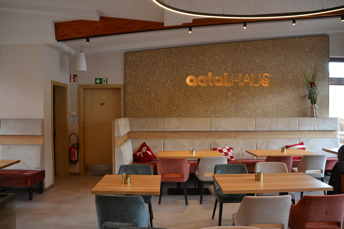 • Im Restaurant Aatalhaus sind Tische mit heller und blendfreier Beleuchtung vorhanden, an denen keine Lampen stehen oder hängen, die das Gesichtsfeld bzw. den Blickkontakt stören.
