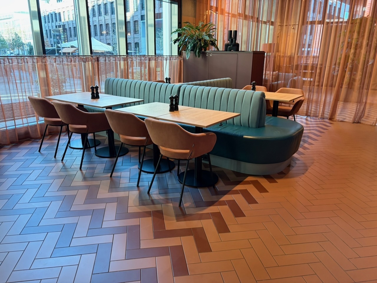 - Im Restaurant sind Tische mit heller und blendfreier Beleuchtung vorhanden, an denen keine Lampen stehen oder hängen, die das Gesichtsfeld bzw. den Blickkontakt stören.