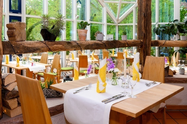 - Im Speiseraum sind Tische mit heller und blendfreier Beleuchtung vorhanden, an denen keine Lampen stehen oder hängen, die das Gesichtsfeld bzw. den Blickkontakt stören.