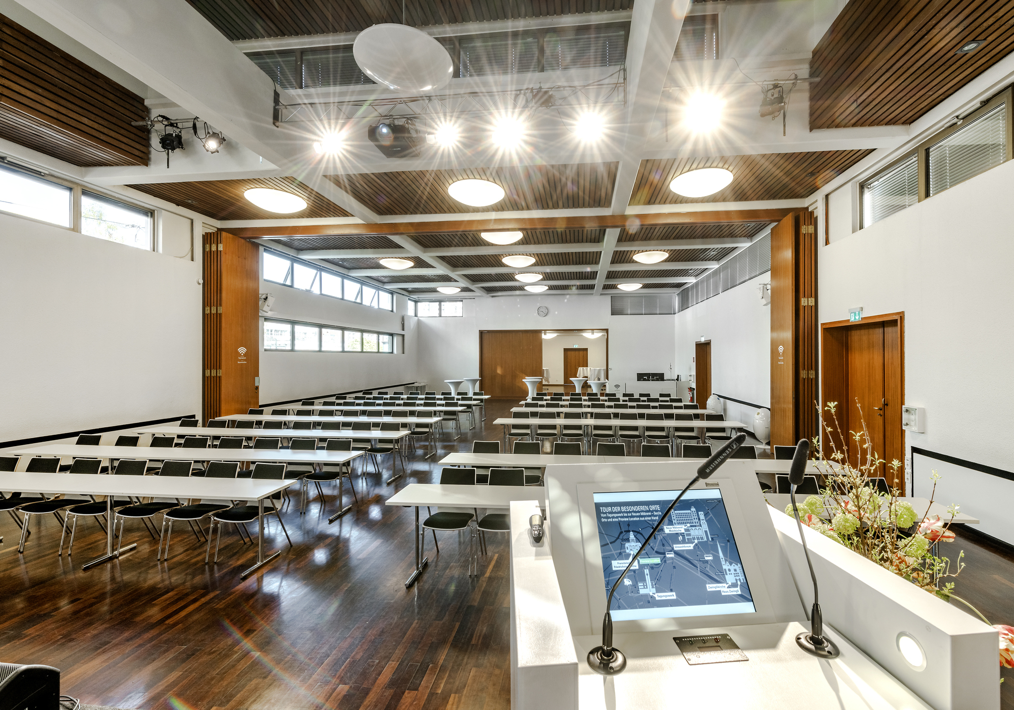 An eine Kirche erinnert beim Tagungswerk heute nur noch der Glockenturm auf dem Innenhof. Schlicht und doch elegant wirkt die Tagungslocation in Berlin-Kreuzberg nahe dem Checkpoint Charlie. Mit einen großen, teilbaren Saal und 5 Seminarräumen auf mehreren Etagen, sowie einer großen Dachterrasse, bietet die Location Platz für rund 300 Personen. Im Übrigen ist beim Tagungswerk der Name Programm, denn die Location ist perfekt für Kongresse und Tagungen.