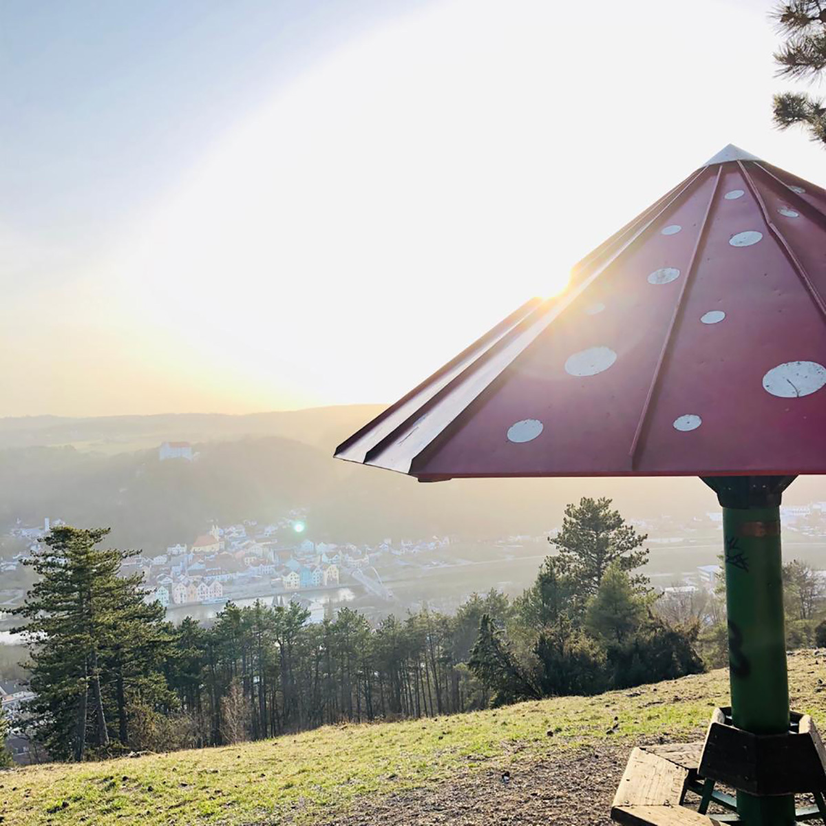 Der Aussichtspunkt Schwammerl in Riedenburg ermöglicht einen herrlichen Panoramablick auf die Drei-Burgen-Stadt.