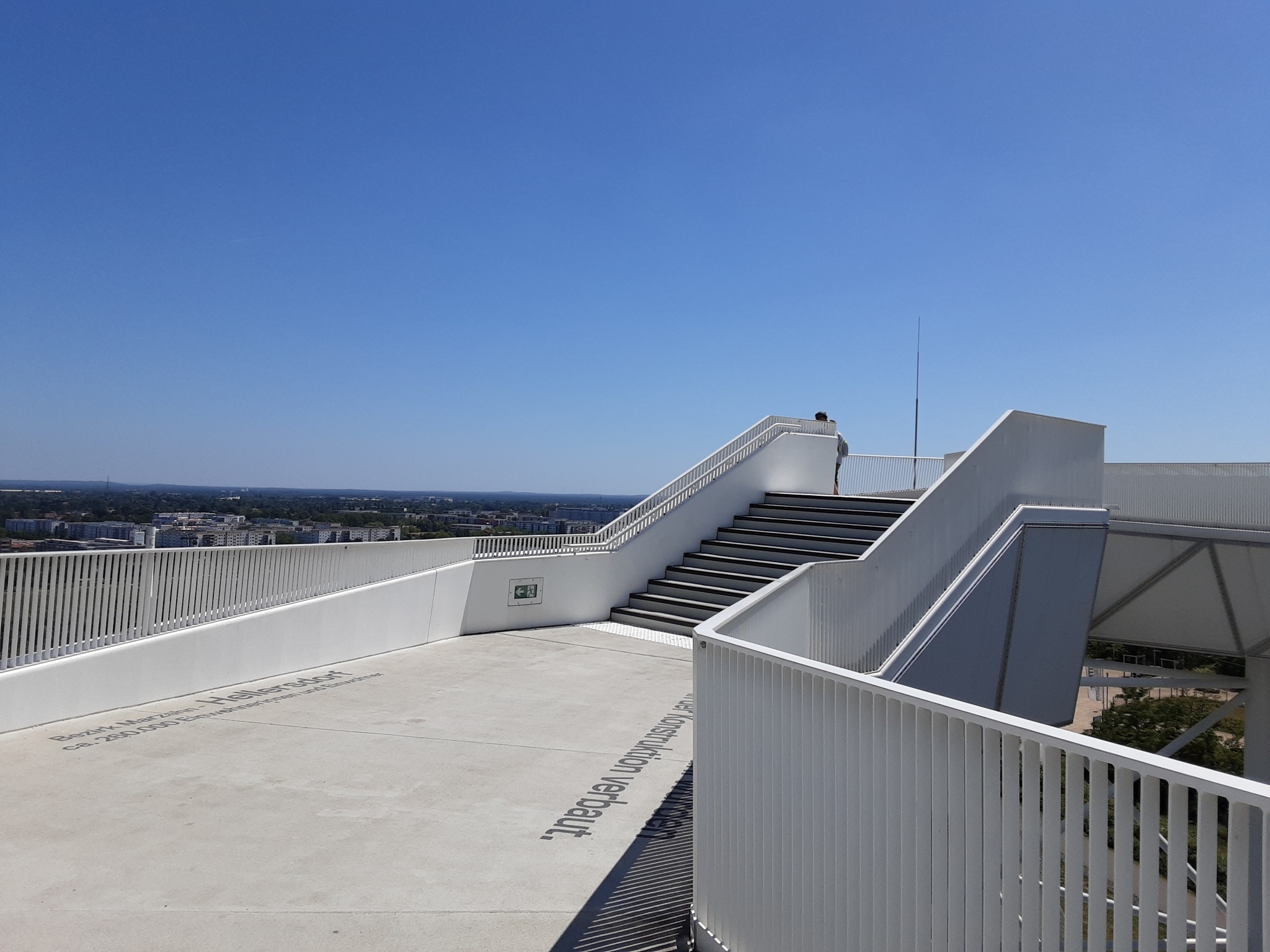 - Der Panoramaweg auf der Aussichtsplattform ist 90 m lang. Er wird einmal durch eine Treppe unterbrochen.