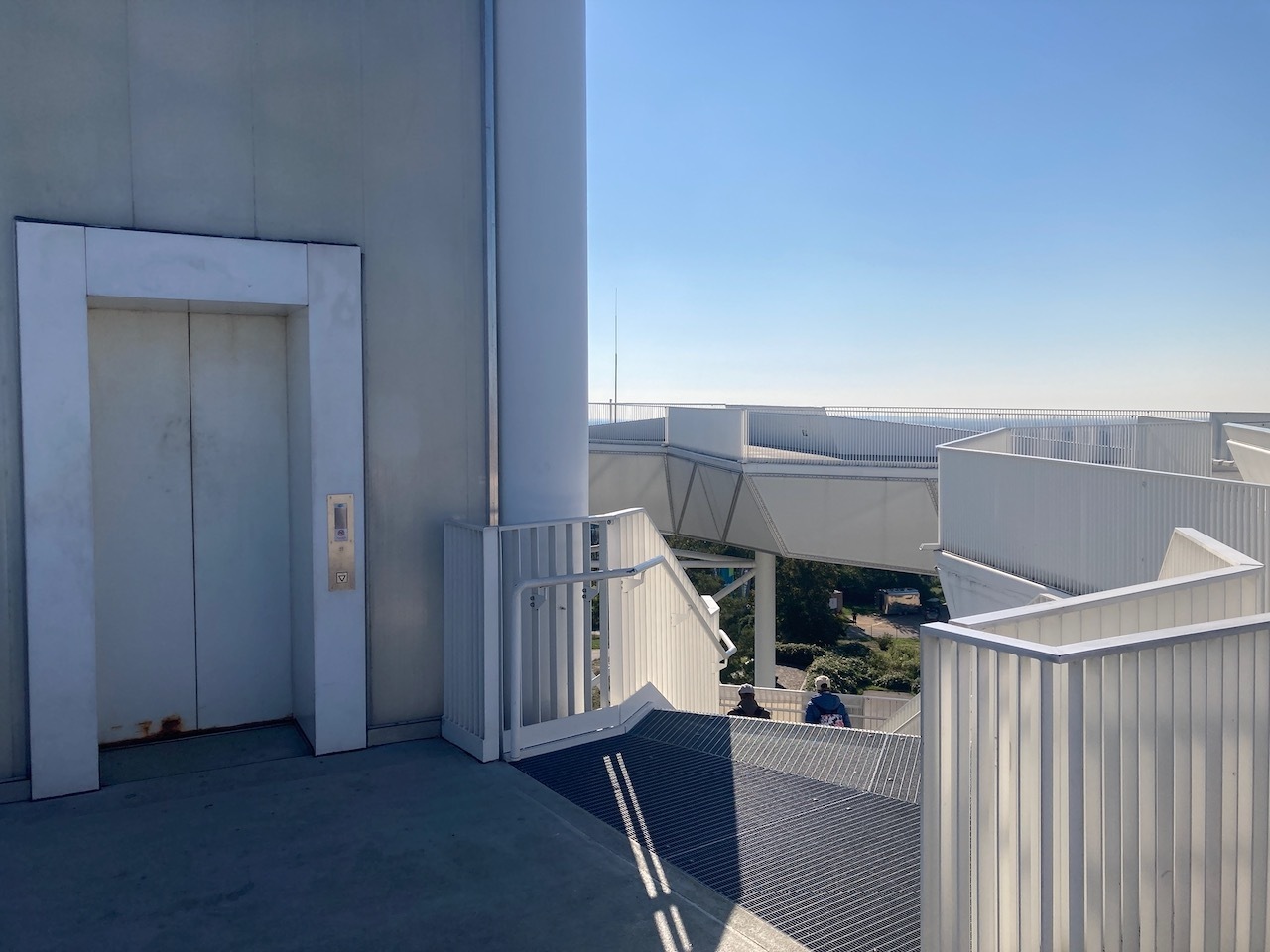 - Der Panoramaweg auf der Aussichtsplattform ist 90 m lang. Er wird einmal durch Treppen unterbrochen und ist daher nicht rundum befahrbar.